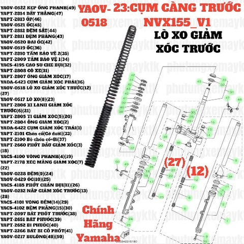 [NVX155_V1][23:CỤM CÀNG TRƯỚC] YAOV-0518 LÒ XO GIẢM XÓC TRƯỚC NVX155_V1 (12)(27)