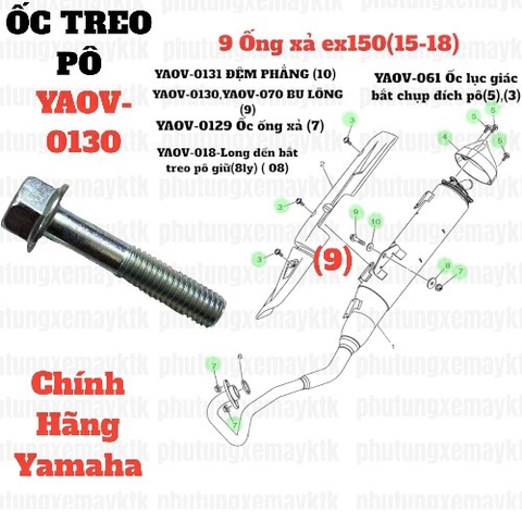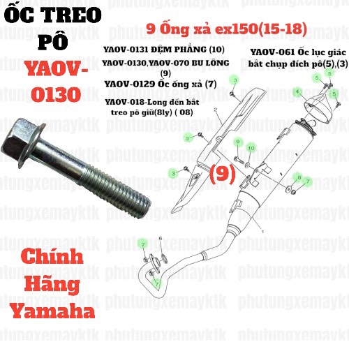 [EX15] [9:Ống xả] YAOV-0130 BU LÔNG xe EX150(15-18) (9) sài chung với YAOV-070-[Yamaha]